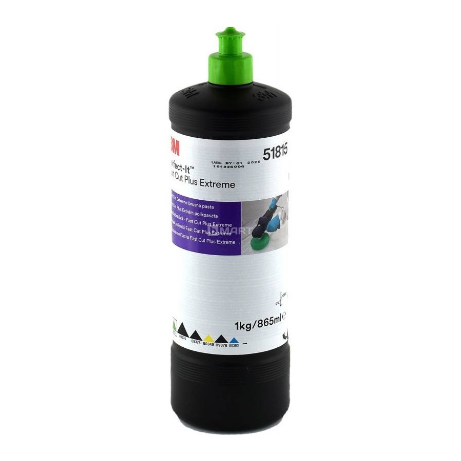 Gruboziarnista pasta polerska 3M™ Fast Cut Extreme, która jest profesjonalnym i bardzo wydajnym środkiem wykorzystywanym do zarysowań powstałych po wcześniejszym usuwaniu niedoskonałości powierzchni. Dzięki innowacyjnej formule bardzo dobrze sprawdza się podczas zgrubnego polerowania. Fast Cut Extreme jest oznaczony również kolorem zielonym nakrętki. Zaleca się stosowanie z zieloną gąbka polerską 3M.